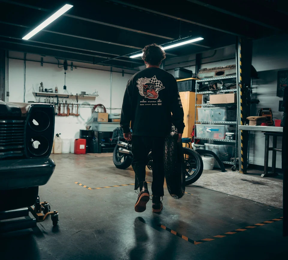 Questa maglia girocollo ispirata al mondo delle corse offre un comfort rilassato. Realizzata in 100% cotone Terry di alta qualità da 460 gr, presenta un bordo in maglia a coste di alta qualità per mantenerne la forma su polsini e corpo. Ulteriori dettagli includono doppie cuciture di rinforzo su tutte le cuciture principali, nastro interno in jersey arancione a contrasto sulla cucitura interna del collo e grafiche stampate a mano morbida su davanti, dietro e maniche.