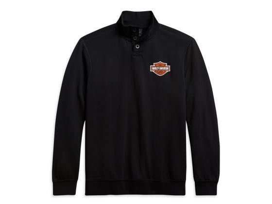 Dalle riunioni mattutine alle avventure serali, questo maglione è perfetto per ogni occasione. Il tessuto French Terry spazzolato, interamente in cotone, offre una sensazione di morbidezza, mentre la chiusura a bottoni sul davanti aggiunge versatilità e stile. Logo minimale con un tocco di colore sul davanti, per un look perfetto sia per il lavoro che per il tempo libero.